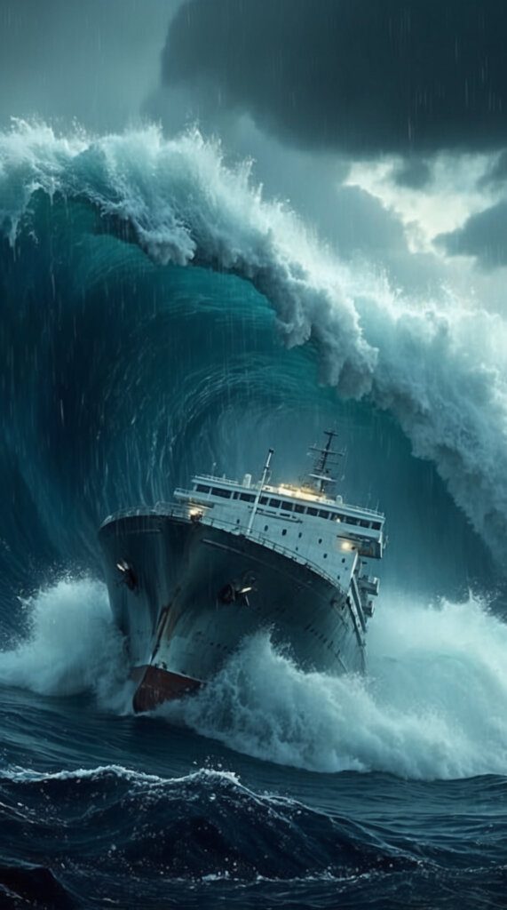 Ocean waves crashing on rocks wallpaper in cinematic style.Download Image