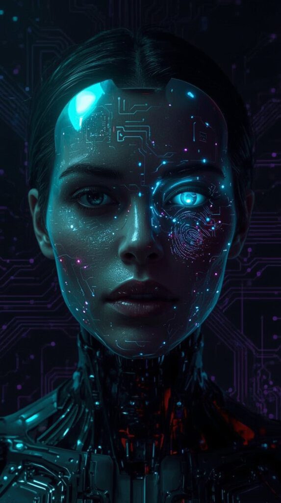 Ultra-high-resolution wallpaper for mobile of a futuristic glowing cityscape seen from a high-angle view at twilightDownload Image